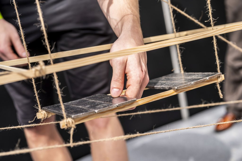 Pri zaťažovacej skúške sa na model postupne pokladajú závažia, pokiaľ sa konštrukcia nezrúti. Študenti tak môžu analyzovať slabé miesta svojho návrhu.