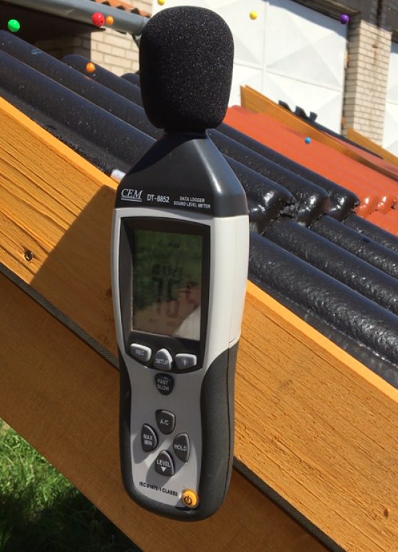 Merací prístroj po celý čas snímal hladinu hluku pod konštrukciou. A výsledky? Pri betónovej krytine sa hladina hluku pohybovala medzi 52 a 77 dB, pri ľahkej konštrukcii dosahovala 90 až 100 dB.