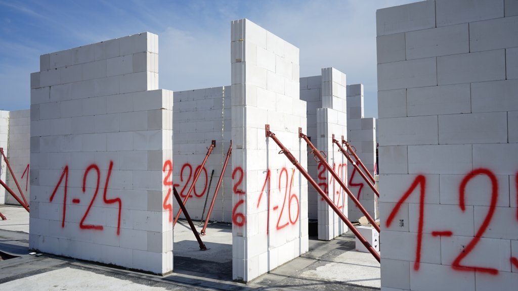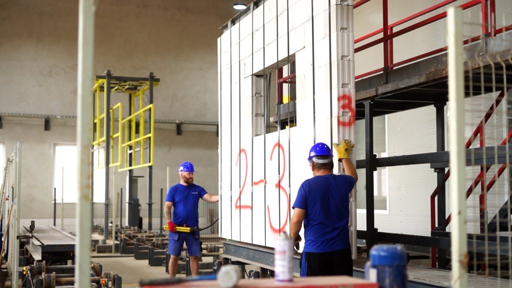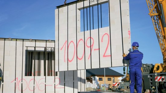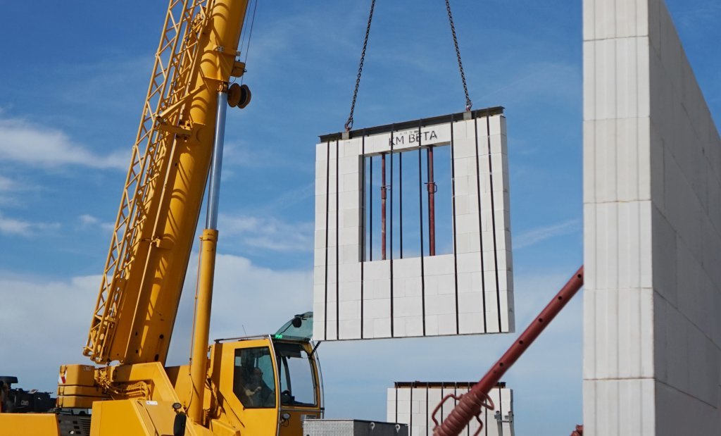 „Stavba začína zameraním základovej dosky a vytýčením pozícií stien. Po inštalácii dištančných podložiek a maltového lôžka sa jednotlivé prvky ukladajú pomocou žeriava, vyrovnávajú a zaisťujú vzperami. Podľa kladačského plánu sa kontroluje presnosť lícovania a styčné škáry sa vypĺňajú montážnou penou,“ popisuje priebeh stavby technický konzultant KM Beta Vlastimil Sova.