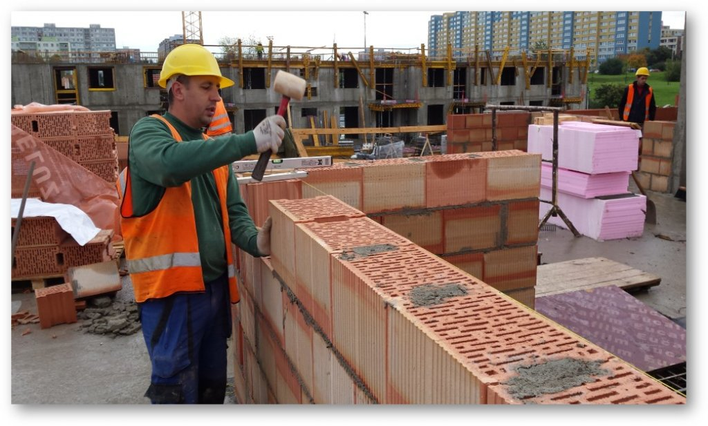 HELUZ overil funkčnosť riešenia na bytovom dome so stenami z jednovrstvového muriva HELUZ FAMILY 44 a železobetónovým stropom hrúbky 250 mm. Medzibytové steny boli zhotovené z tehál HELUZ AKU 30 MK, vnútorné akustické priečky z tehál HELUZ AKU 11,5. Murovanie prebiehalo na bežnú maltu.