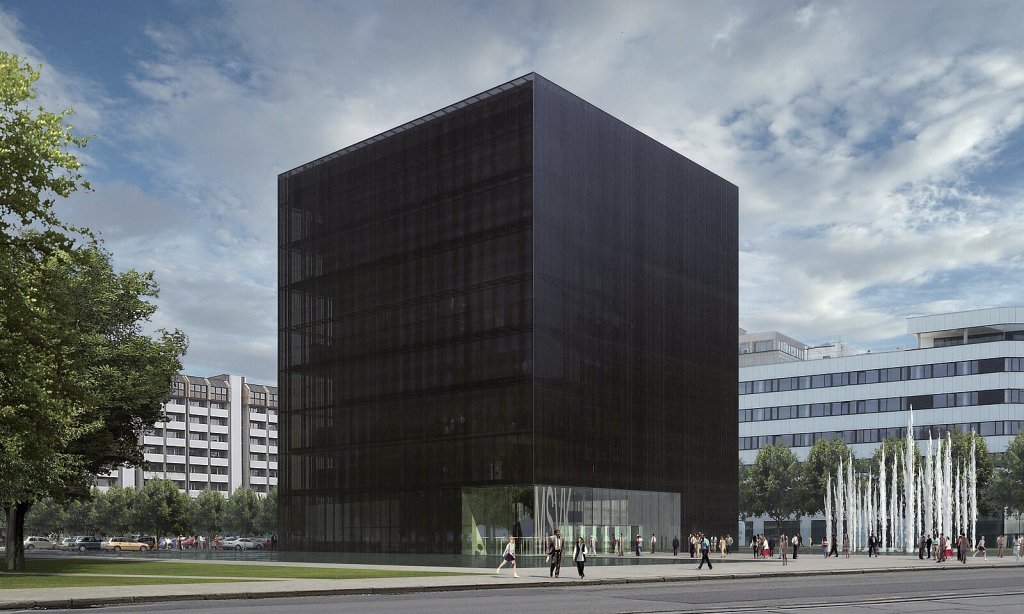 Pozeráme sa na dno jamy, kde sa budujú základy Čiernej kocky z príslušných materiálov – betónu, železa, hydroizolačných fólií… Dozvedáme sa, že budova bude jednoduchá, ale dominantná, s prevýšenou hranatou formou, mierne pootočená k Triede 28. októbra. Počet podlaží: dve podzemné, deväť nadzemných, 40 metrov na výšku. Zaujímavosťou je, že geometricky nejde o kocku, ale jej proporcie sú v tvare kvádra. Toto reflektuje aj nové logo, ktoré je súčasťou vizuálnej identity vytvorenej Romanom Černohousom v roku 2025. Celková podlažná plocha: 16 000 m², počet parkovacích miest v podzemnom i vonkajšom parkovisku: 164, počet zväzkov: 1,2 milióna knižničných jednotiek. V interiéri nebude napr. chýbať konferenčná sála, 20 samostatných a skupinových študovní, kino, zasadacie miestnosti, kreatívna dielňa pre nové technológie, nahrávacie štúdio, digitalizačné laboratórium, učebne, kaviareň, priestor pre deti. Prevádzka budovy samotnej bude samozrejme nepretržitá, ale priestor by mal byť pre návštevníkov dostupný 365 dní v roku od rána do neskorých večerných hodín. Presnejšia otváracia doba bude ešte len zverejnená s blížiacim sa otvorením.