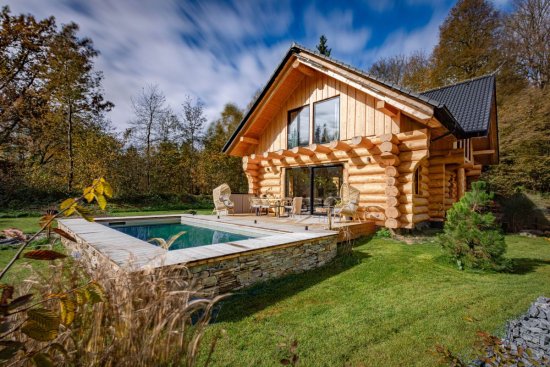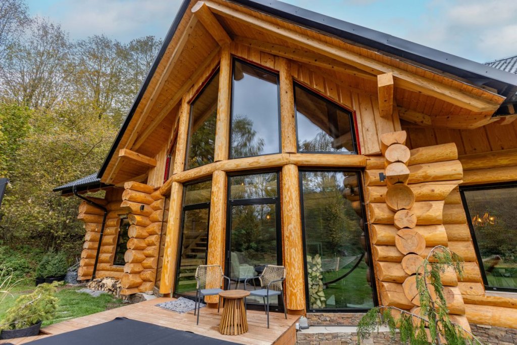 Pri prvom pohľade na dom by len málokto uhádol, že nestojí v horskej kanadskej divočine, ale na Morave. Pri plánovaní vzhľadu nového domu boli pre pani majiteľku inšpiráciou jej cesty na Slovensko, kde ju očarili miestne domy s presklenými štítmi. Pre umiestnenie zrubu, ktorý nie je pre Českú republiku typickou stavbou, našla ideálnu lokalitu – v Bělkovickom údolí, neďaleko prameňa Tešíkovskej kyselky.