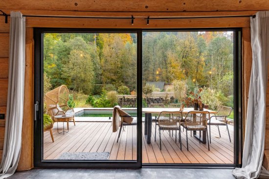 Dom ponúka oázu oddychu nielen v interiéri, ale aj v exteriéri. Z obytnej aj jedálenskej časti je priamy vstup na dve terasy. Jedna z terás ponúka luxusný nerezový bazén zapustený priamo do jej konštrukcie. Relaxovať sa dá aj vo vírivke alebo v hojdacej sieti a nerušene si tak užiť pokoj a čistotu okolitej prírody. „Celý dom je pre mňa ako moje vlastné, vysnívané dieťa. Podieľala som sa nielen na návrhu stavby, ale tiež jeho interiéru, do ktorého som vložila všetky svoje vízie a sny,“ uzatvára prehliadku objektu jeho majiteľka.