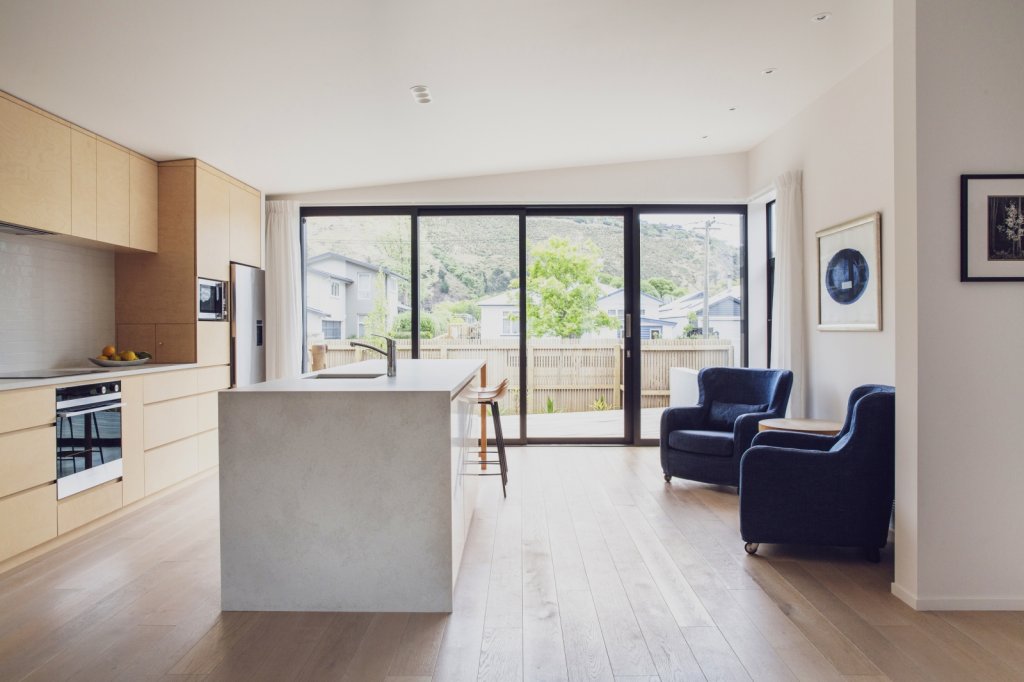 Architekti z AW Architects, renomovaného štúdia so sídlom v Christchurch, navrhli dom ako moderný bungalov reagujúci na úzky a pretiahnutý tvar pozemku. Budova stojí na vyvýšenom základe kvôli povodňovému územiu, napriek tomu však zostáva v prirodzenom kontakte s ulicou. Dom prirodzene zapadá do okolitej zástavby - kombinuje jednoduchosť, funkčnosť a ľahkosť moderného bývania.