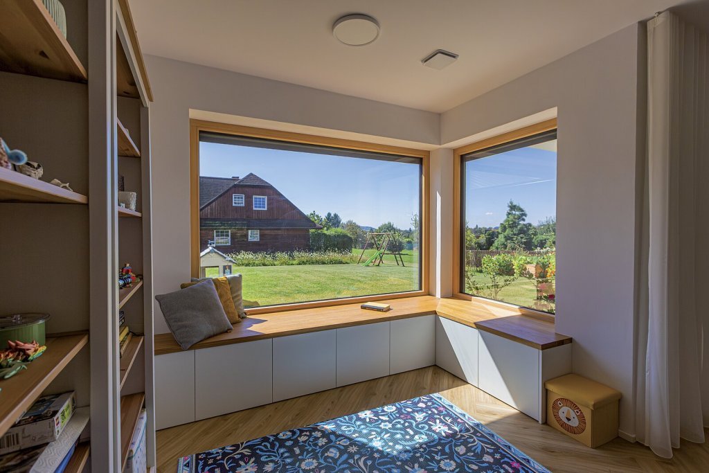 Moja žena chcela rohové okno, čo z nejakých konštrukčných dôvodov úplne neklaplo, ale máme aspoň presklené rohové sedenie pri okne. A ja som chcel dielňu.