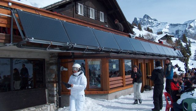 Vo Vysokých Tatrách sú naištalované slnečné kolektory - 8 kusov TS 400 z Thermo-solaru napríklad vo Veľkej Lomnici.