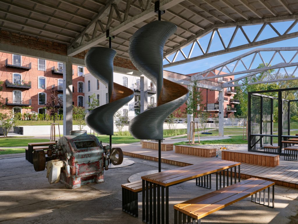 Konverzia areálu je založená na princípe reuse – maximálnom využití pôvodných stavieb, ktorý považujeme za najviac ekologický spôsob nakladania so stavebnými zdrojmi. Projekt dopĺňajú zelené strechy a hospodárenie s dažďovou vodou, ktorá napája obnovený kanál.