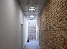 Kolmá dvojpodlažná stavba pôvodnej správnej budovy dostala nový tehlový sokel a svetlú omietku. Byty tu majú podobnú skladbu ako v silu, doplnenú o balkóny. Obe historické budovy prepája nové vertikálne komunikačné jadro zo skla a čierneho plechu, ktoré slúži ako funkčný aj jasne čitateľný súčasný architektonický prvok.